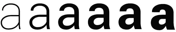 Cada família de fontes por sua vez, pode abrigar algumas ou todas as variações: Thin, Light, Regular, Medium ou Semi Bold, Bold e Black ou Extra Bold (com a variação em Itálico também).
